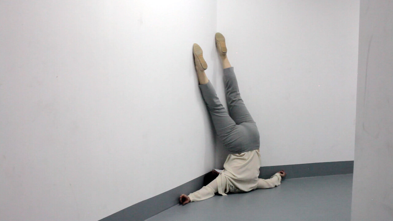 House on Fire explored these concepts through sculpture, photography and a macabre dollhouse in which each room represented another horrifying component of the experiments. Dancing with the Doctor embodied these experiences of MKUltra through dance - blurring the lines between Orlikow's hospital experiences of hallucinations, pain, and sensory deprivation with the flashbacks and embodied trauma that ensued after she was released. At SAAG, Johnson's latest exploration of her family history combines elements of both projects and recreates, in human scale, each of the rooms from the burning dollhouse. Presenting Hospital Hallway - a sterile, clinical space - Johnson sets the stage in the first of a series of projects that will take years to complete. A series of videos lines the walls, each featuring the artist as she plays the patient, her grandmother, caught in a claustrophobic and nightmarish purgatory. She moves within and against the walls, both resistant and dependent, her movements gradually communicating the loss of control, loss of self, and total loss of body and mind.